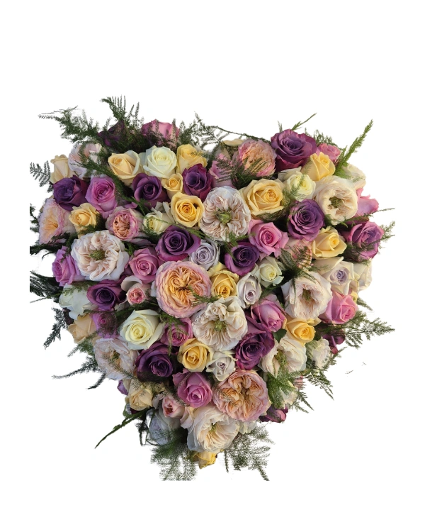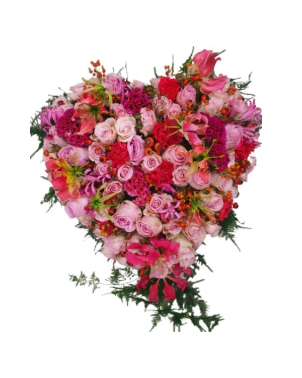 Rouwbloemstuk Magda gemengd Hart open