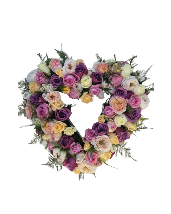 Rouwbloemstuk Tessa rozen Hart open