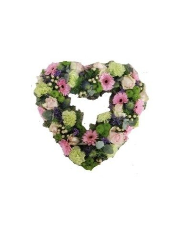 Rouwbloemstuk Fien gemengd Hart open
