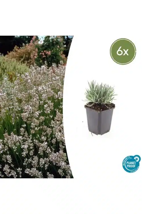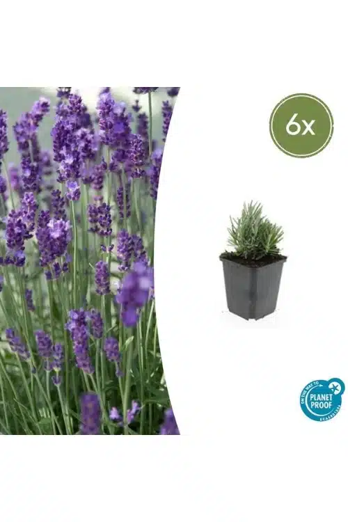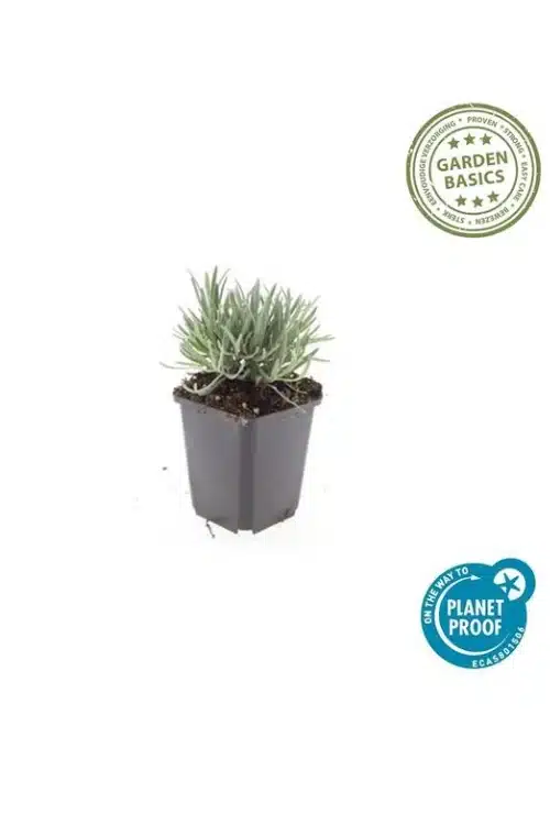 **Lavandula angustifolia ‘Dwarf Blue’** – Een compacte lavendelsoort met prachtige, geurige blauwe bloemen. Deze dwergvariëteit is perfect voor kleinere tuinen,