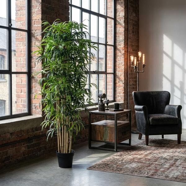 Dankzij het realistische ontwerp en hoogwaardige materialen is deze Bamboe bijna niet van echt te onderscheiden. Hij blijft het hele jaar door mooi en vol, zonder water, zonlicht of onderhoud – ideaal voor iedereen die van een groene uitstraling houdt zonder extra verzorging.