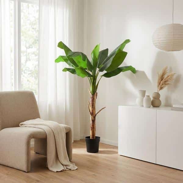 Met een hoogte van 150 cm is deze kunstplant ideaal voor woonkamer, hal, kantoor of commerciële ruimtes. Plaats hem in een stijlvolle pot om een tropische en luxueuze touch aan je interieur toe te voegen.