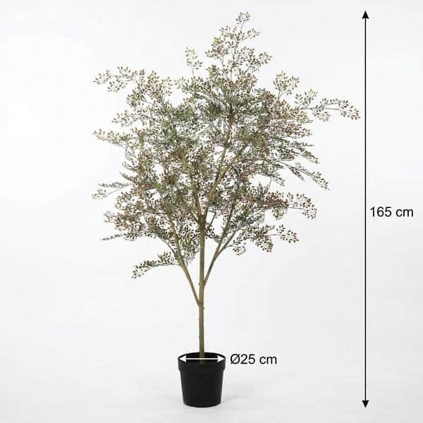 Met zijn hoogte van 165 cm is deze kunstplant perfect om een hoek van de kamer op te vullen of een opvallend statement te maken in je woonkamer, hal of kantoorruimte. Plaats hem in een mooie pot en geniet het hele jaar door van een levendig, natuurlijk accent zonder extra verzorging.
