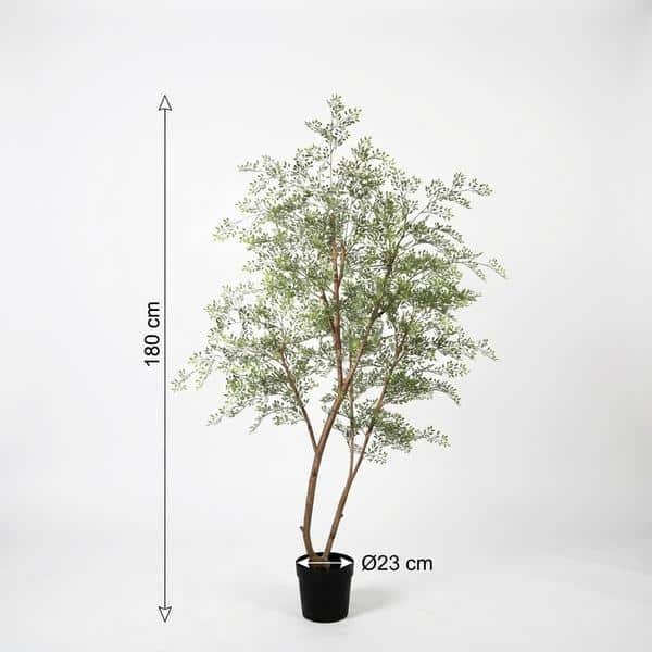 Breng een tropische en stijlvolle sfeer in je interieur met deze kunst Cassia boom van 180 cm. Met zijn volle takken en elegante, groene bladeren is deze boom een echte blikvanger die direct karakter en leven toevoegt aan elke ruimte.
