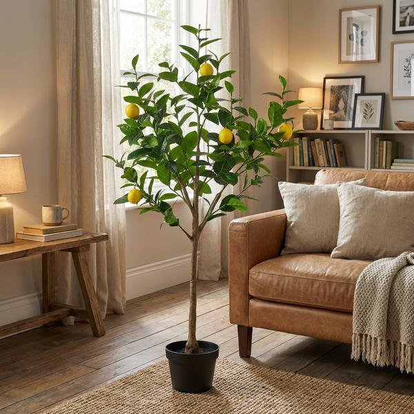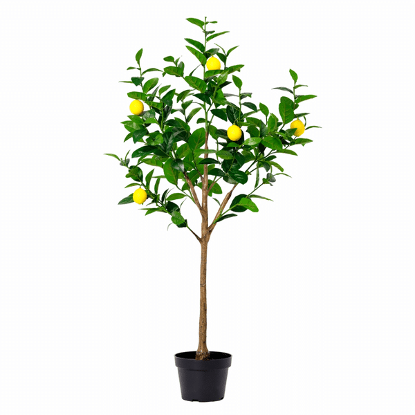 Breng een zonnige en tropische uitstraling in je interieur met deze kunst Citroenboom van 150 cm. Met zijn realistische bladeren en felgele citroenen oogt deze plant bijna echt, terwijl hij volledig onderhoudsvrij is. Geen water, zonlicht of snoeien nodig – perfect voor drukke woningen, kantoren of commerciële ruimtes.