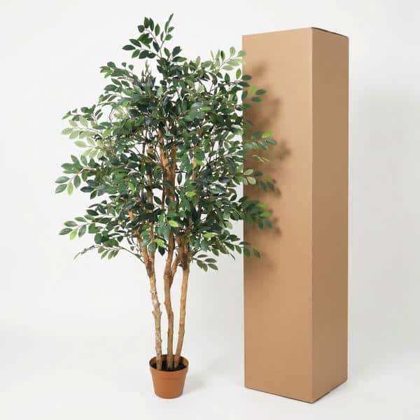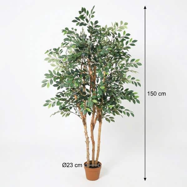 Breng een exotische en stijlvolle sfeer in je interieur met deze kunst Ficus Exotica van 150 cm. Met zijn weelderige, realistische bladeren en tropische uitstraling lijkt deze plant bijna echt, terwijl hij volledig onderhoudsvrij is. Geen water, zonlicht of snoeien nodig – perfect voor woningen, kantoren of commerciële ruimtes.