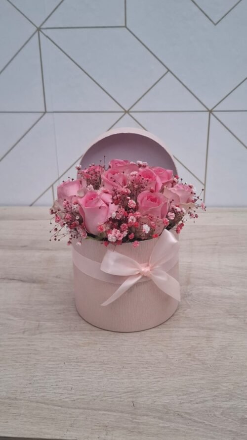 Hoedendoosje gevuld met roosjes en gips